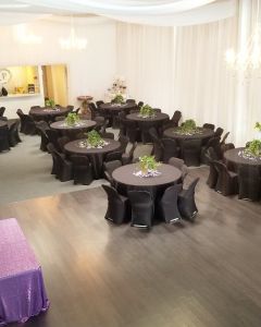 Whether you’re hosting a wedding, quinceañera, birthday party, or coprorate event, our venue, with beautiful chandeliers, elegant white draping, and attentive service will allow you to treat your guests to a lavish night they won’t soon forget! Read more here