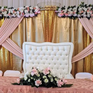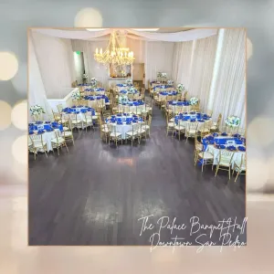 The Palace is situated in historic downtown San Pedro, California. Its timeless historic style conveys subtle elegance. The large, open space and floor-to-ceiling draping offers a majestic setting for any event.